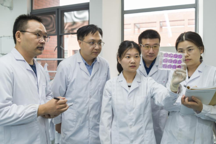 研究人员饶桂波、曹晟、李慧玲、彭珂、张玉兰(从左至右)。陈熙/摄