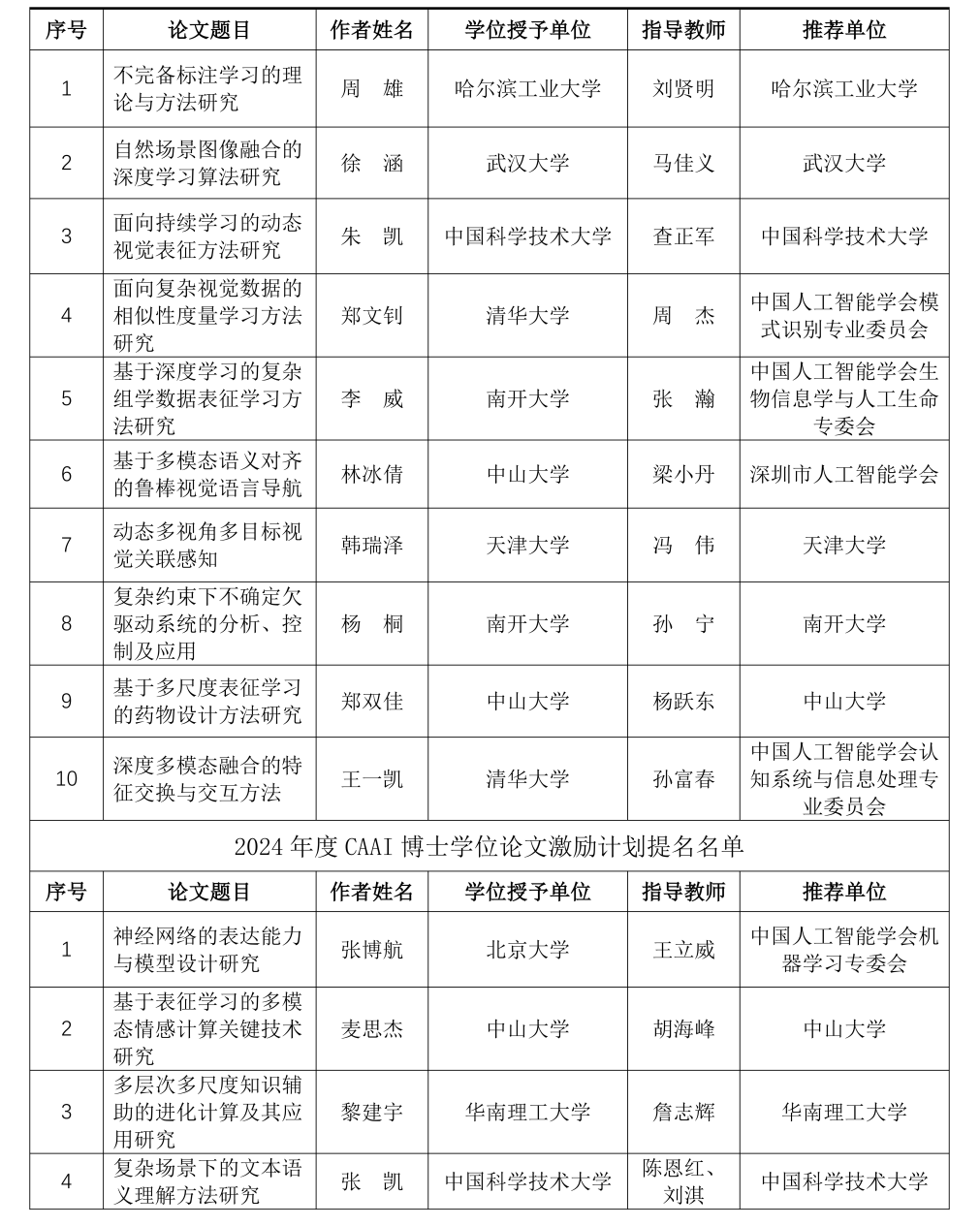 中国人工智能学会发布2024年度激励计划名单。 各有关单位: