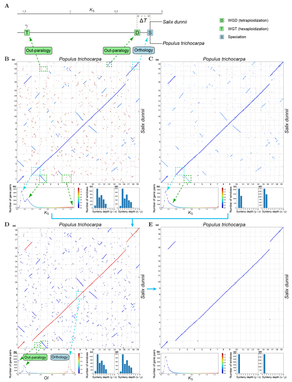 图1. OI检测直系同源的共线性:以毛白杨-长梗柳为例。