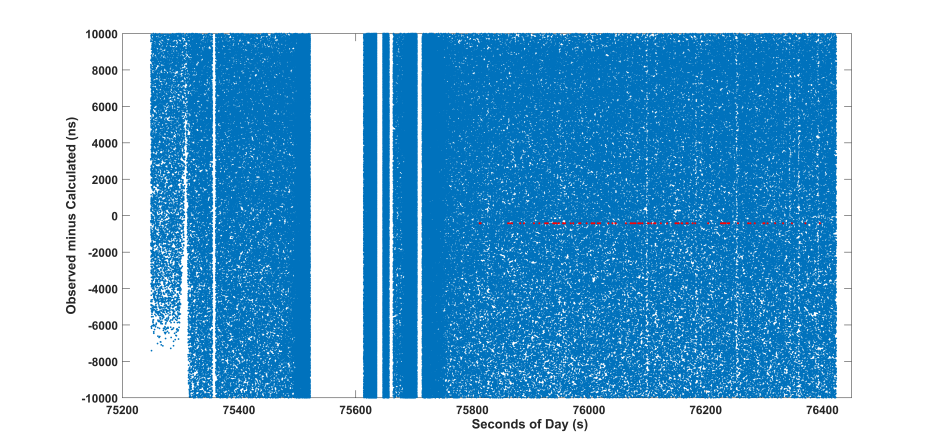 DRO-A卫星激光测距图(上)和测距微弱信号识别图(下)。 (云南天文台供图)