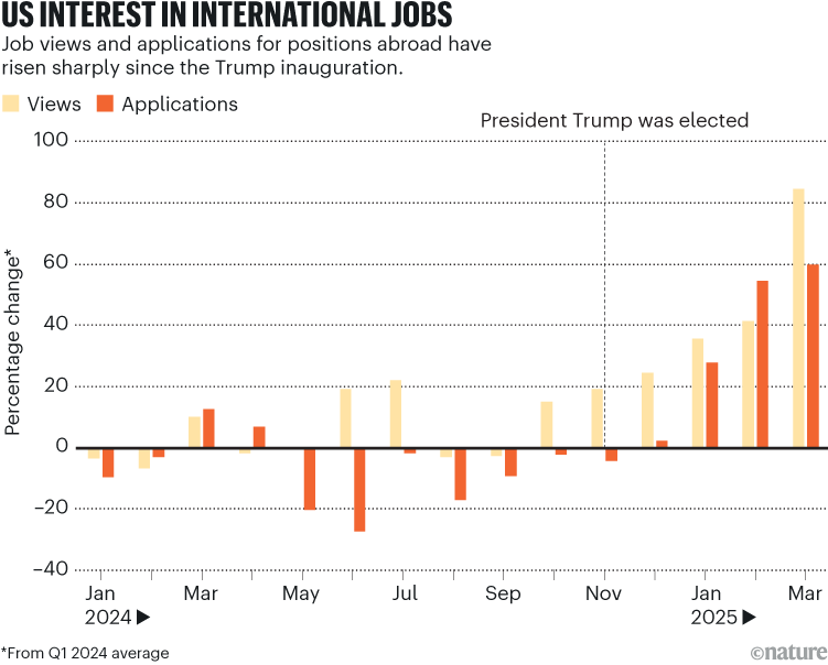 美国科学家对国际职位关注度显著提升 图源:Nature