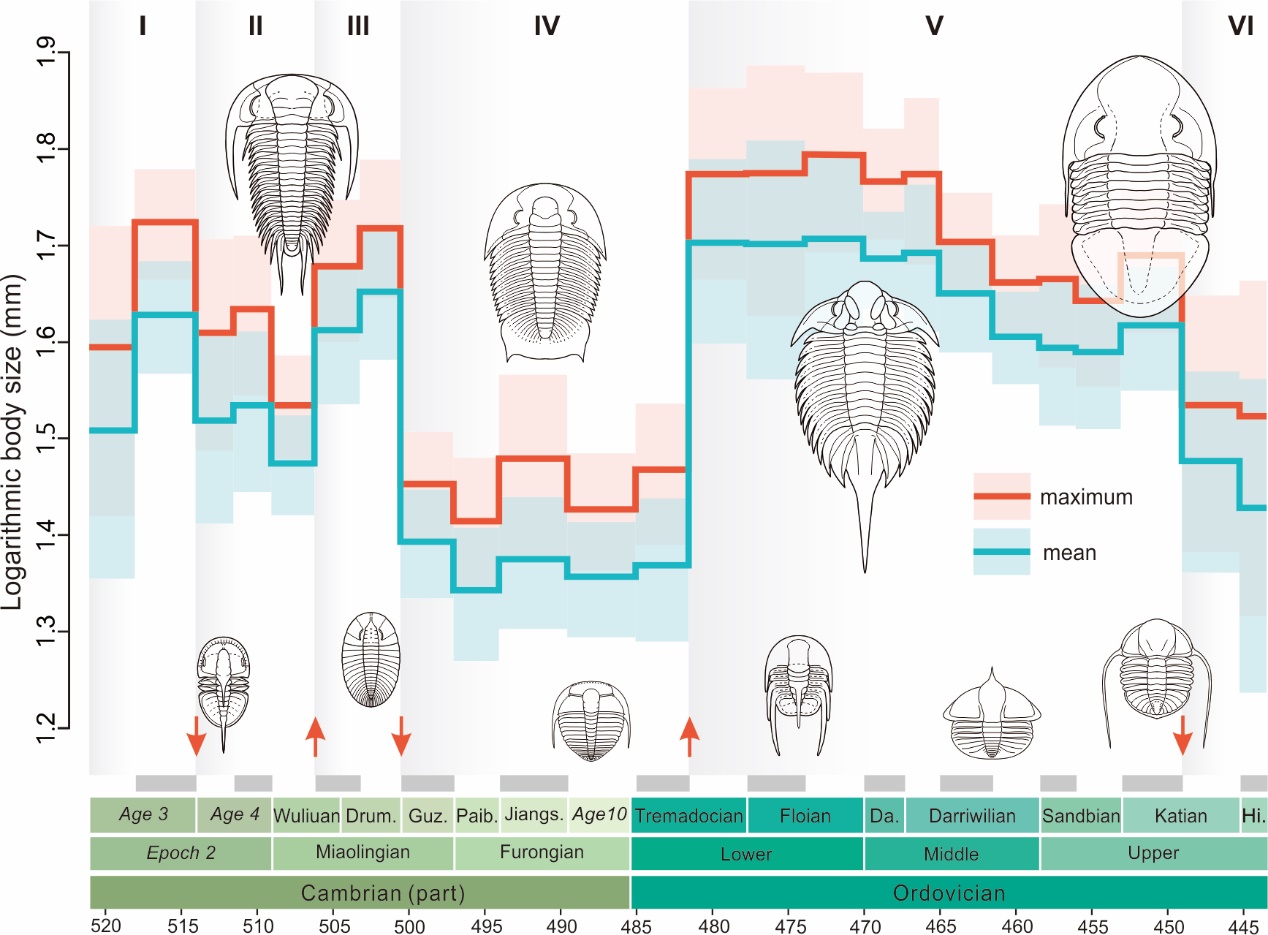 古生代早期寒武纪与奥陶纪全球三叶虫体型的演化模式