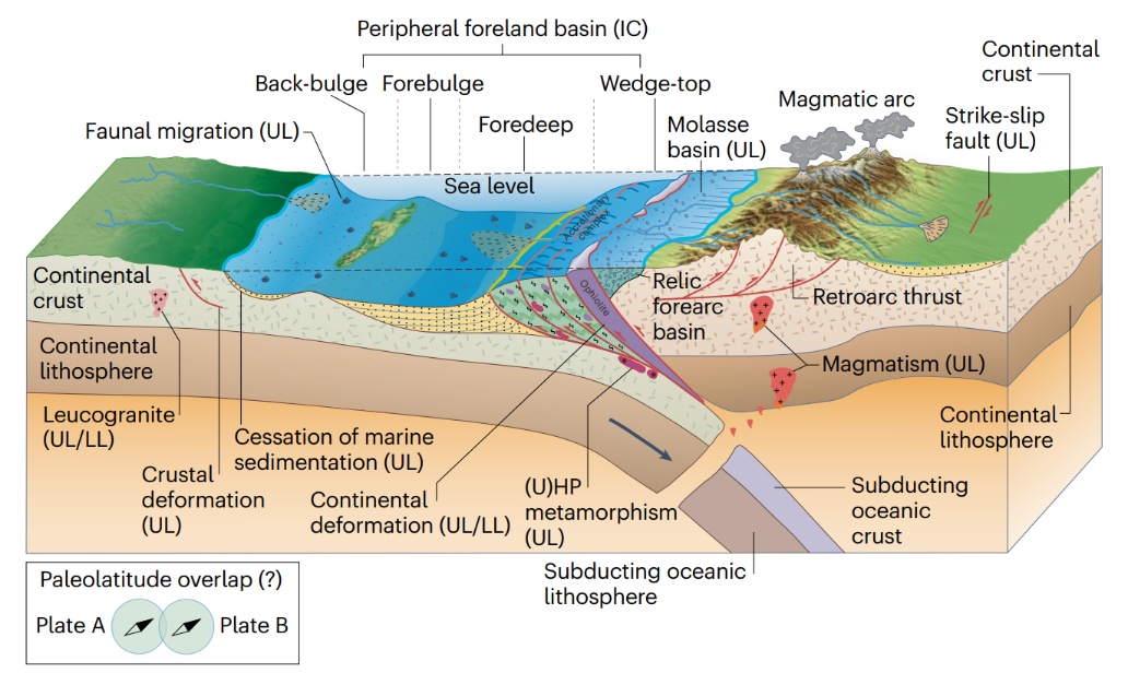 由于碰撞记录往往遭受后期改造,缺乏统一判别标准,精确限定初始碰撞时间长期以来是地质学的挑战之一。研究团队系统评估了数十种常用方法,包括超高压变质作用、岛弧岩浆活动、古地磁极移曲线、最高海相沉积、碰撞带构造变形和周缘前陆盆地系统等。