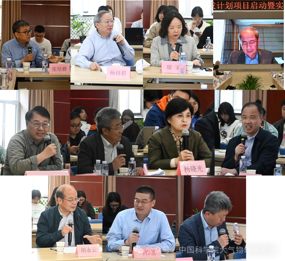 项目启动会与会专家、领导及研究团队合影项目跟踪专家复旦大学张人禾院士、国家气候中心张培群研究员,项目咨询专家南京信息工程大学王会军院士、云南大学陈文教授、中国农业科学院农业环境与可持续发展研究所高清竹研究员、北京大学胡永云教授、南京信息工程大学廖宏教授、中国科学院青藏高原研究所马伟强研究员、南京大学王涛教授、中山大学杨崧教授、中国农业大学杨晓光教授、南京大学杨修群教授、中国气象科学研究院翟盘茂研究员与会指导。大气所陆日宇副所长、周天军副所长、姚利处长等领导出席会议。项目和课题骨干成员等90余人参会。