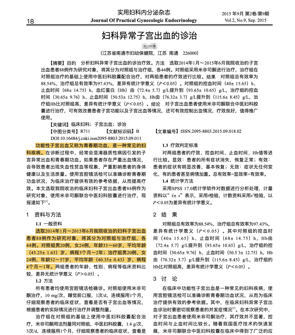 另一篇名为《妇科异常子宫出血的诊治》文章中,以妇科子宫出血患者为研究对象,但对照治疗组中也出现了40例男性患者。该文章作者沈某为南通市妇幼保健院妇产科门诊的副主任医师。