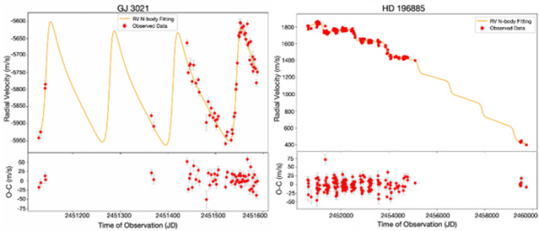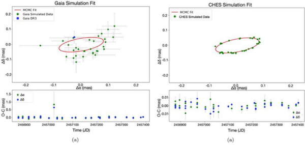 近期,中国科学院紫金山天文台领衔的科研团队针对CHES开展了先期研究,聚焦CHES任务中的近邻密近双星系统,结合视向速度实测数据与天体测量模拟数据,开展动力学轨道拟合以揭示其周围行星的质量。