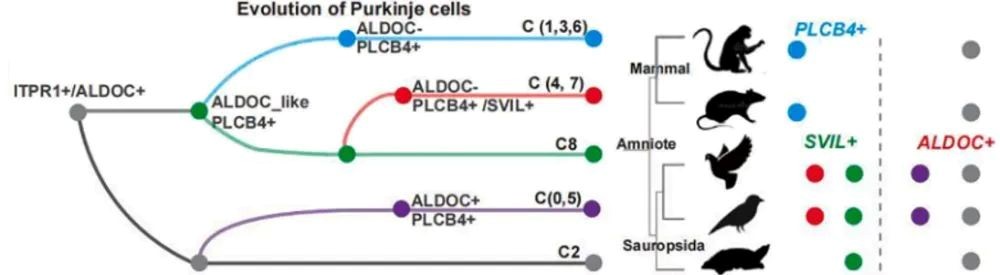 研究人员推断的小脑浦肯野细胞亚型演化模式。研究团队供图