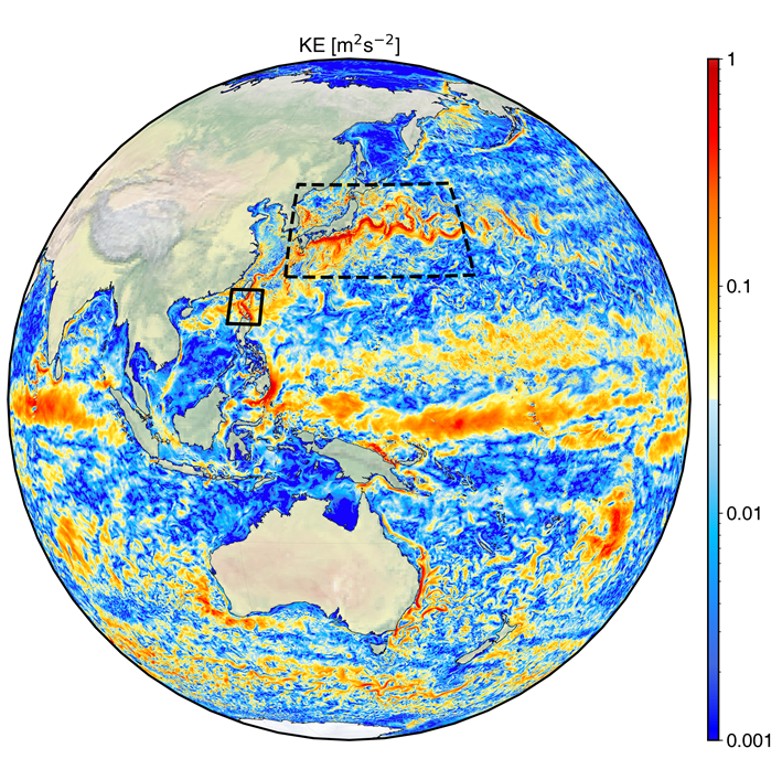 全球1公里模拟2016年1月19日的表面海洋动能。受访者供图