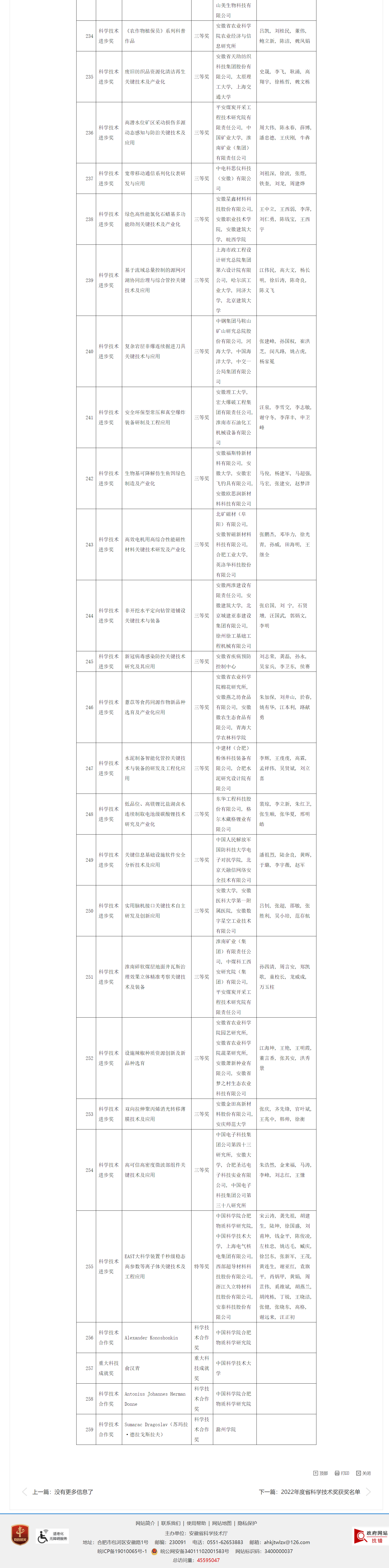 2023年度安徽省科学技术奖获奖名单公布。