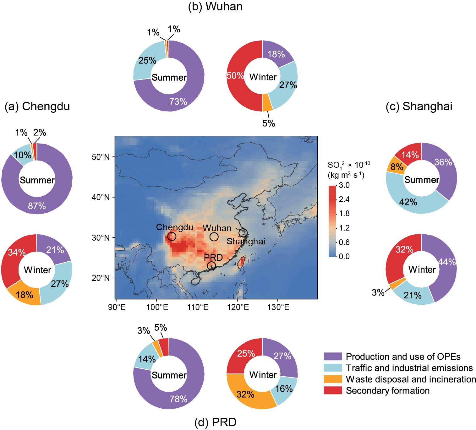 中国典型城市大气中颗粒态亲水性有机磷酸酯的来源解析。研究团队供图