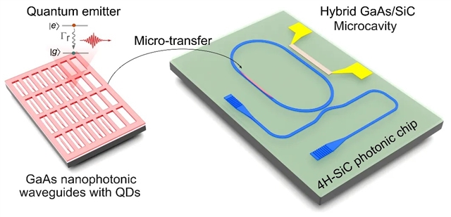 图1:基于III-V量子点和电光4H-SiC材料的混合集成量子点微腔