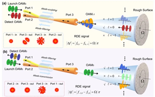 近年来,随着对光场物理维度的探索,人们发现利用光场的轨道角动量,能产生与物体的旋转速度有关的光频率变化,即旋转多普勒效应。基于该理论发展的旋转多普勒测速技术,为角速度测量研究开辟了新思路。为了突破现有技术成本高、体积大、灵活性差等局限,华中科技大学王健教授领导的多维光子学实验室(MDPL)团队提出并开发了首款收发一体的全光纤旋转多普勒测速技术,该技术具有集成度高和超宽带工作的特点,为实现小型化的新型光学测量工具提供了可能,在多场景的运动监测中具有广阔的应用前景。