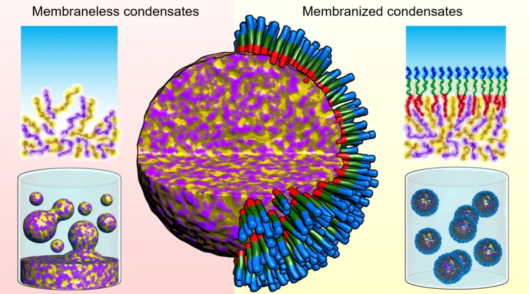 在我们日常生活中,油是一种凝聚相物质,而水则可称为水相物质。蒋凌翔团队通过系统分析不同类型的凝聚液滴,研究发现,它们在黏度、极性、带电性质等方面彼此截然不同。而绝大多数传统稳定剂,都只能针对某一小部分发挥作用,或者干脆水土不服。