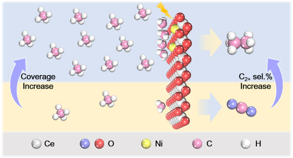 近日,中国科学院大连化学物理研究所研究员章福祥团队联合清华大学教授唐军旺团队,设计合成Ni1-CeO2单原子光催化剂,实现室温下甲烷高活性、高选择性地制备乙烷,并发现甲烷覆盖度与C-C键偶联制乙烷的选择性之间存在明显正向依赖关系。
