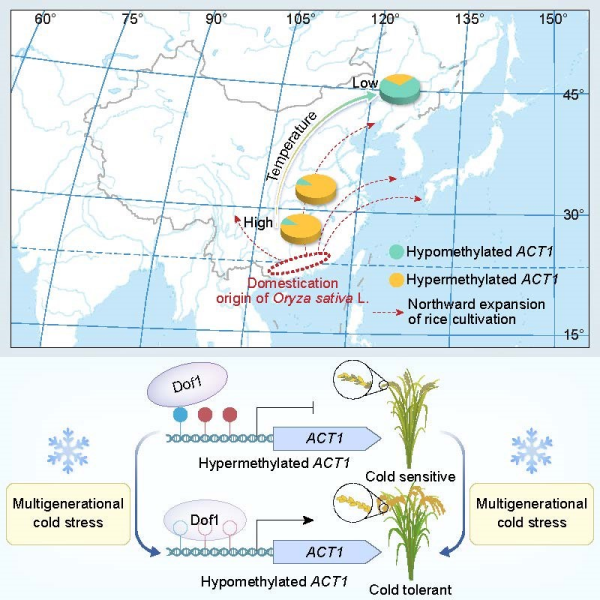 多代冷胁迫诱导ACT1启动子区DNA去甲基化赋予水稻高纬度耐冷适应性