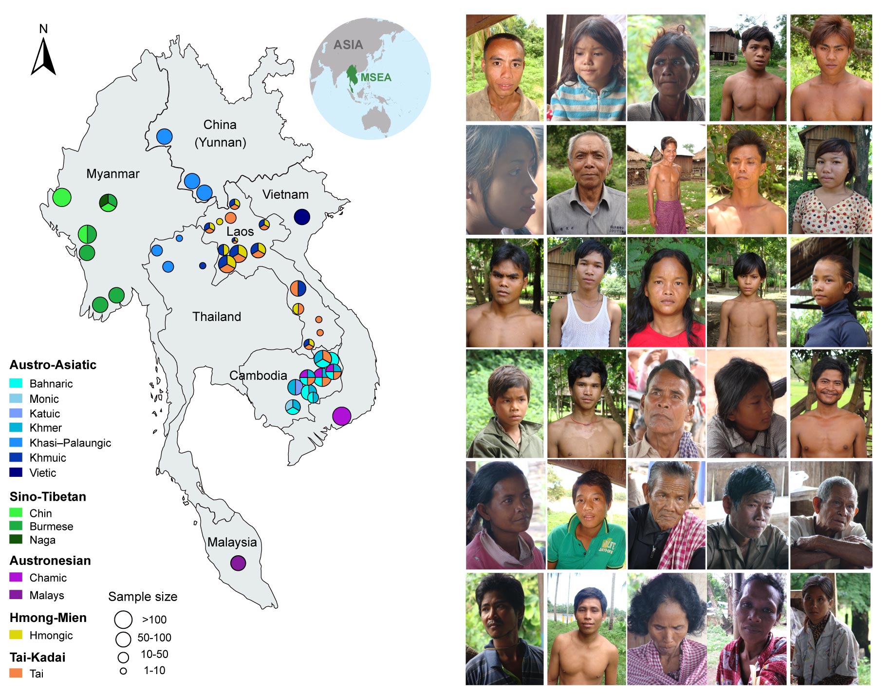 他们发现,大多数东南亚人群的遗传结构主要与他们的地理分布格局一致,而非按语系聚类,表明人群间的分化主要通过地理隔离形成,印证了该地区复杂的遗传交融与语言更替历史。