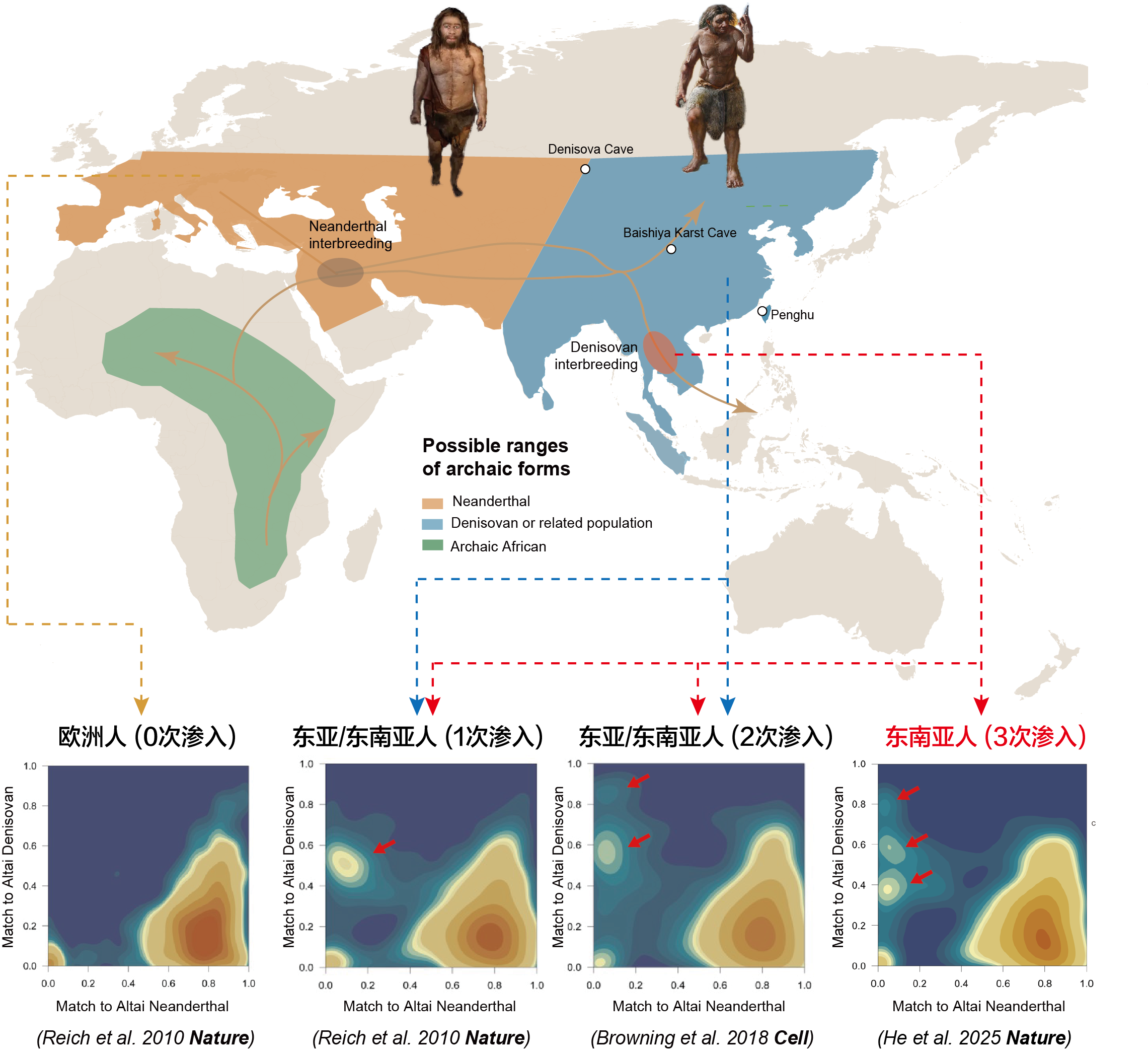 除了之前报道的东亚人群的两次渗入事件,该团队首次在东南亚土著人群中发现了第3次基因渗入。