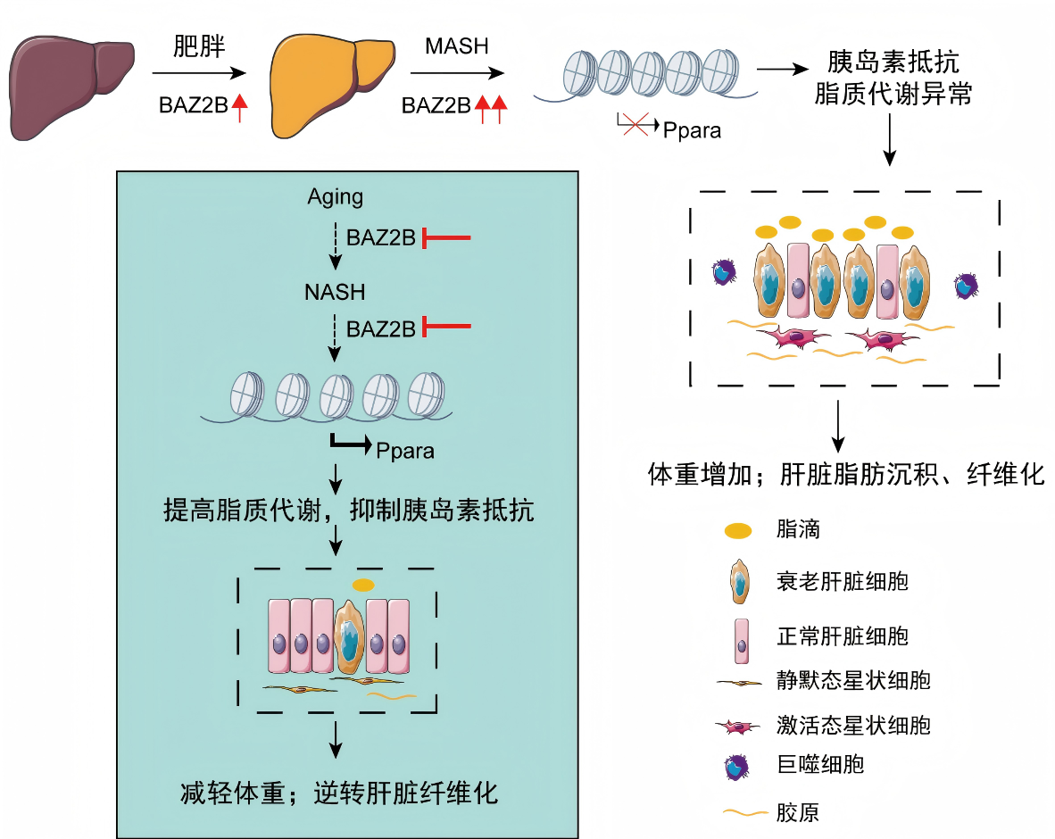 BAZ2B参与调控肝脏衰老和MASH纤维化的模式工作图。图片由研究团队提供