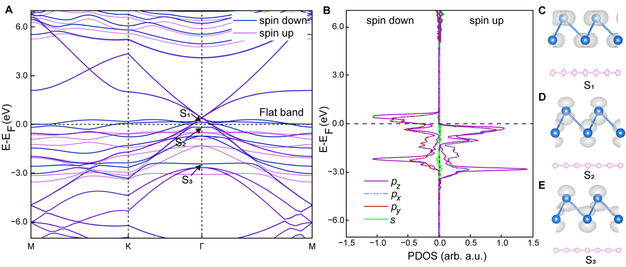 图3:石墨烯衬底上单层碘烯的电子结构。