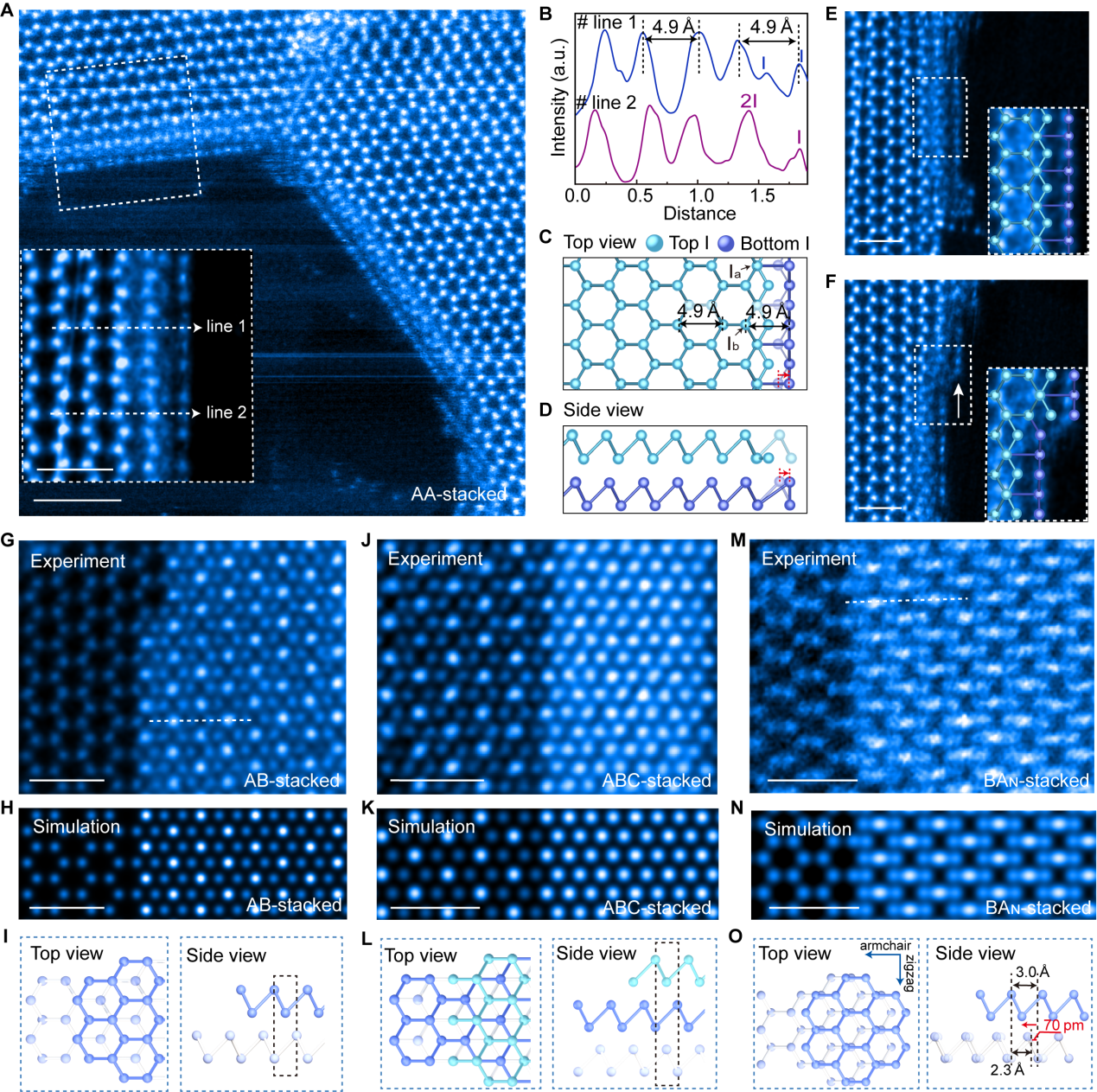 图4:多层碘烯中的原子边缘和堆叠多型。