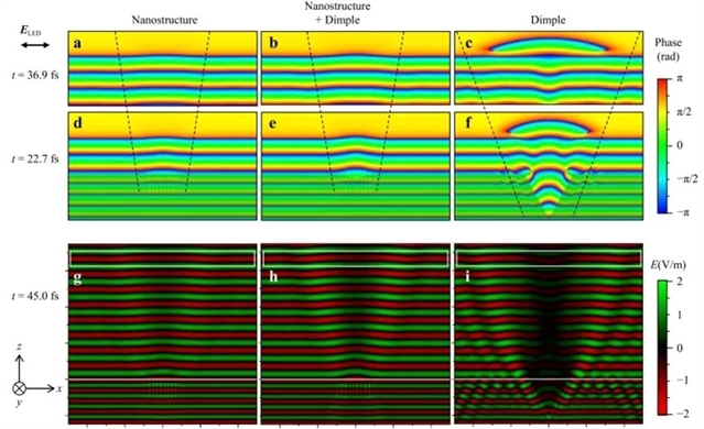 对于透射率增加的现象,研究人员采用有限差分时域法(FDTD)进行了深入分析。通过模拟电磁场在纳米结构区域的传播特性,他们发现透射光波前发生特定扭曲,产生了类似于光学干涉的效应。这种扭曲波前在成像平面中心区域形成对比度增强,解释了为什么配备纳米结构的表面会表现出更高的透射率。这一理论分析为利用纳米结构调控材料光学性能提供了科学依据。