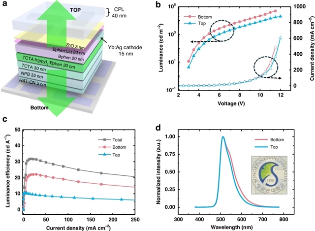 该成果发表在《Light: Science and Applications》,题为Transparent OLED displays for selective bidirectional viewing using ZnO/Yb:Ag cathode with highly smooth and low-barrier surface。