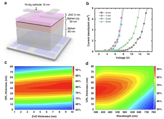 图1. 优化阴极单元中的 ZnO 和覆盖层 (CPL) 厚度
