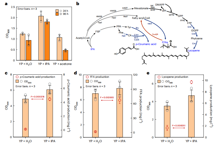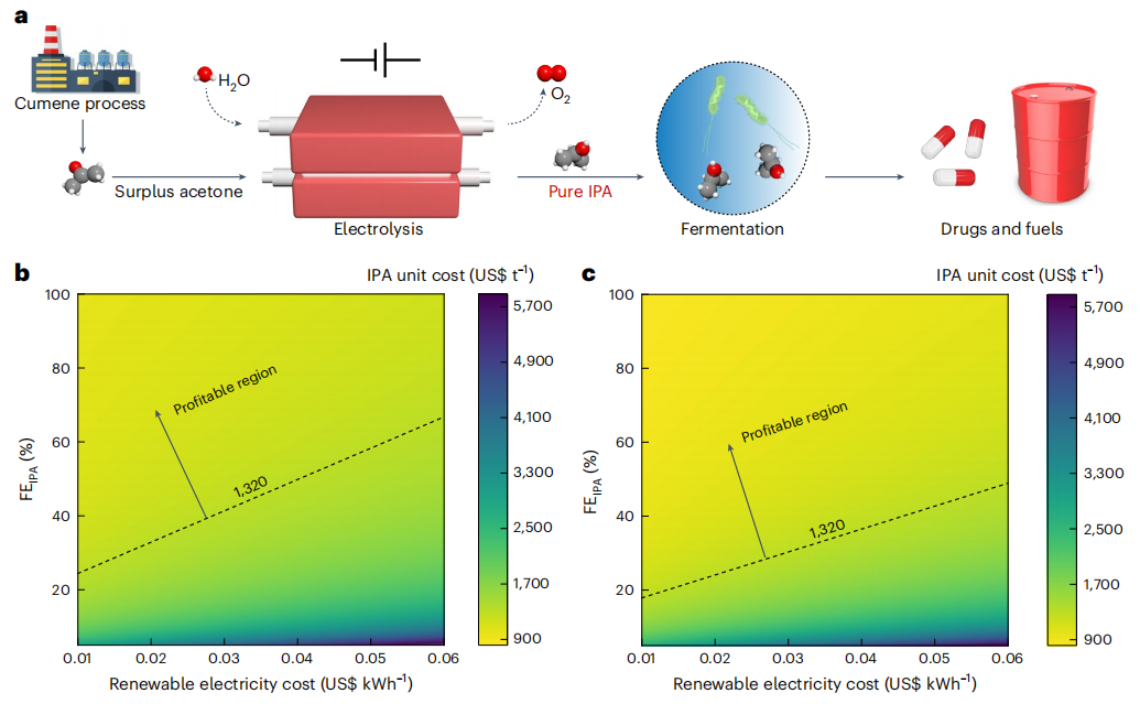 图1:IPA介导的电-生物催化丙酮升值转化。