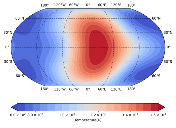 近日,中国科学院紫金山天文台研究员季江徽团队联合上海交通大学、中国科学技术大学科研人员,利用詹姆斯·韦布空间望远镜数据与二维大气反演模型,揭示了热木星WASP-39 b大气层晨昏不对称现象,并引入基于浅水模拟的动力学约束来提供物理合理的晨昏温度差异。