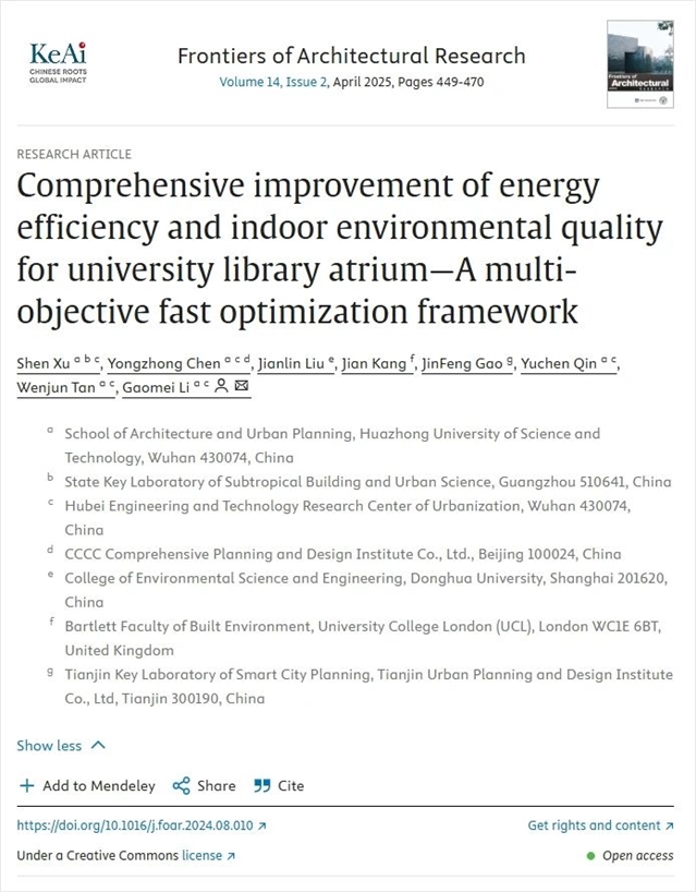 FoAR 高校图书馆中庭节能与室内环境质量综合提升——多目标快速优化框架。论文标题:Comprehensive improvement of energy efficiency and indoor environmental quality for university library atrium—A multi-objective fast optimization framework