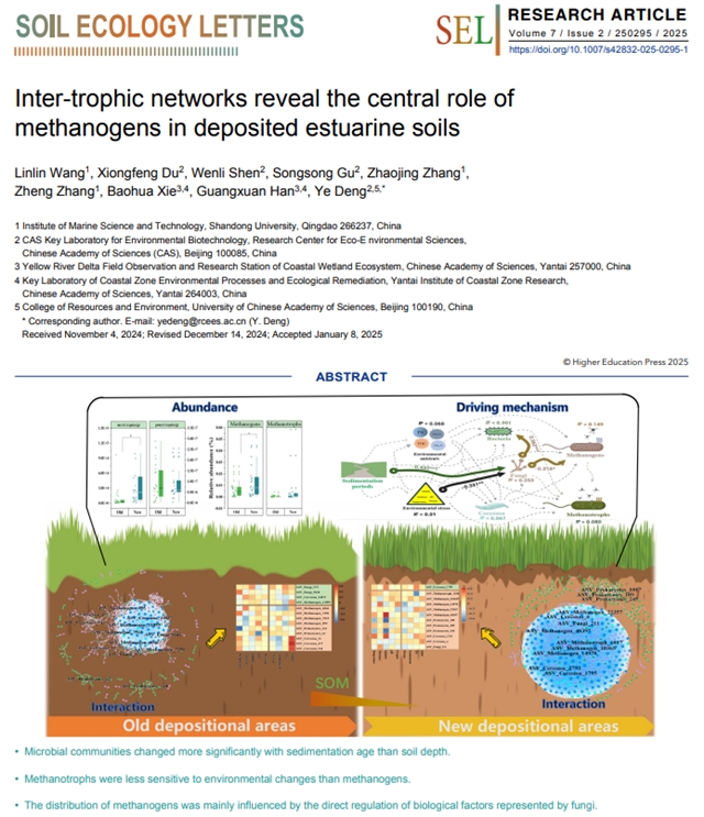 SEL 域间网络揭示产甲烷菌在沉积河口土壤的核心作用。论文标题:Inter-trophic networks reveal the central role of methanogens in deposited estuarine soils