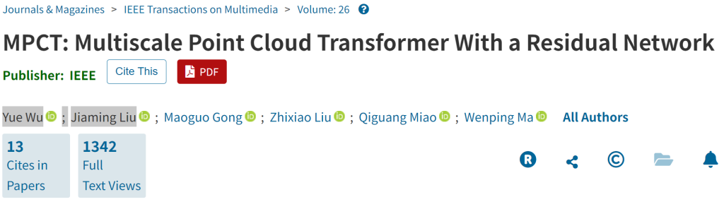 相关论文题为《MPCT: Multiscale Point Cloud Transformer With a Residual Network》,于2024年发表在期刊IEEE Transactions on Multimedia上。据澎湃新闻5月19日晚间的版本,该文第6页确出现了“……small number for numerical stability. liujiamingshidaXX Then, we use farthest point……”的非正常表述。