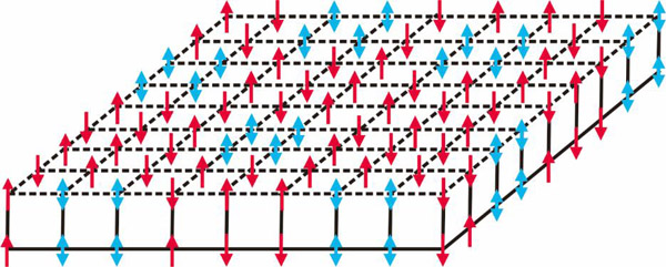 “背包问题”与自旋玻璃模型的联系是,“背包问题”的二元决定性变量对应于自旋向上和自旋向下两种状态。“背包问题”的权重对应于自旋之间的相互作用。“背包问题”的哈密顿量可以映射成具有偏置场的自旋玻璃模型的哈密顿。因此,通过求解自旋玻璃模型可以求解“背包问题”。在“背包问题”中最大化所有物体的价值之和等价于在自旋玻璃模型中最小化自由能。