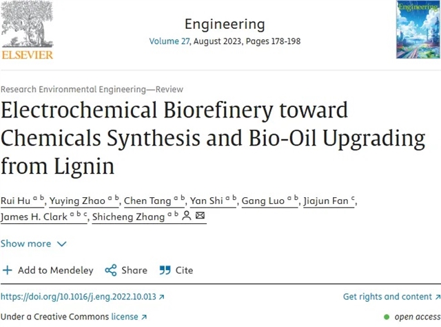 利用木质素合成化学品和升级生物油的电化学生物精炼技术 Engineering。论文标题:Electrochemical Biorefinery Towards Chemicals Synthesis and Bio-Oil Upgrading from Lignin