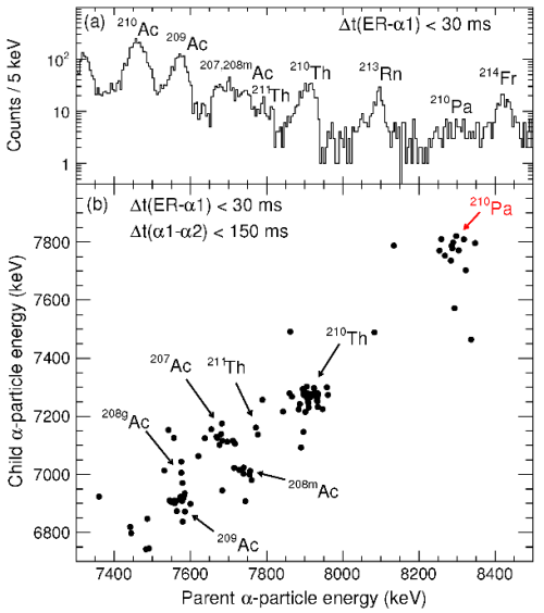 合成与研究新核素是原子核物理研究的前沿热点,对于探索原子核的存在极限、揭示新物理现象、深化对物质结构的理解具有重要意义。然而,在极端缺中子的锕系核区,新核素的产生截面极低(皮巴量级),且寿命极短(毫秒甚至微秒量级),这对实验合成研究带来了巨大挑战。