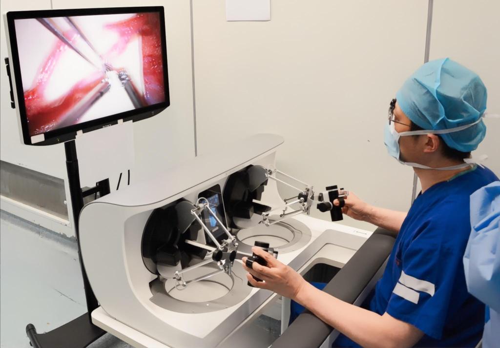 国内首个显微外科机器人临床研究取得进展。 手术过程中,医生操控国产显微机器人进行超微血管缝合。上海交通大学医学院附属第九人民医院供图