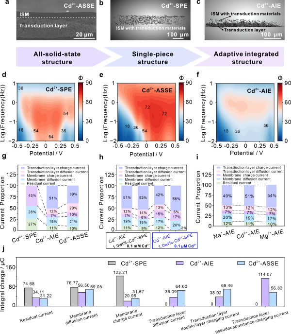 全固态离子选择电极作为智能生物和化学传感器的关键组成部分,近年来展现出广阔的应用前景。研究团队在前期工作中,基于三明治型全固态界面结构开发了一系列转导层材料,实现了多种常见电解质离子的高稳定性检测。研究发现,离子传感性能对传感器的稳定性和可靠性至关重要,其性能本质上受限于传感界面的材料特性及结构特征。