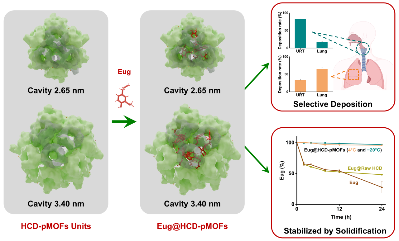 HCD-pMOFs的超分子结构单元假说及作为吸入载体的应用。图片由研究团队提供