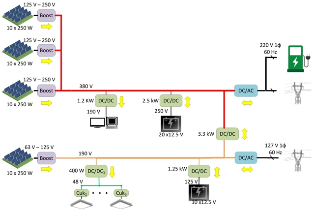 (1) 本文展示了一种适用于直流 (DC) 多总线架构的新型微电网 (MG) 概念。