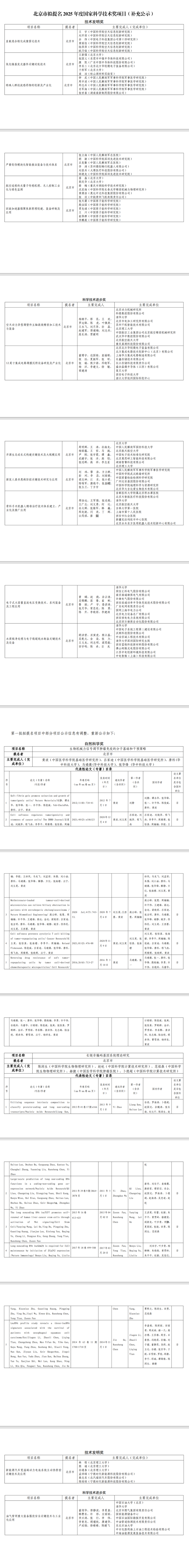 附件:北京市拟提名2025年度国家科学技术奖项目(补充公示)