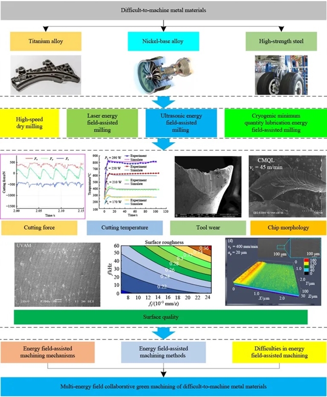 难加工金属材料;绿色加工;高速干式铣削;激光能场辅助铣削;超声能场辅助铣削;低温微量润滑能场辅助铣削