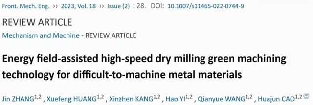 FME 难加工金属材料能场辅助高速干式铣削绿色加工技术。论文标题:Energy field-assisted high-speed dry milling green machining technology for difficult-to-machine metal materials