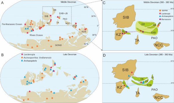 中-晚泥盆世植物大化石时空分布及相关的古地理演化