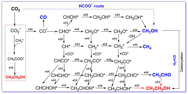 二氧化碳加氢合成高碳醇研究获进展。将温室气体CO2与绿氢耦合并转化为含两个及以上碳原子的高附加值醇(C2+OH),是实现CO2减排并满足全球能源与化学品需求的重要途径。然而,这一过程面临多重挑战,如CO2化学性质惰性、反应网络复杂等问题使精准控制C-C偶联存在较大挑战性。此前,有研究开发出贵金属催化剂、改性费托合成催化剂等多种体系,但目前催化体系C2+OH时空收率尚未达预期。因此,亟需开发更高效的催化剂或设计新的反应路线。