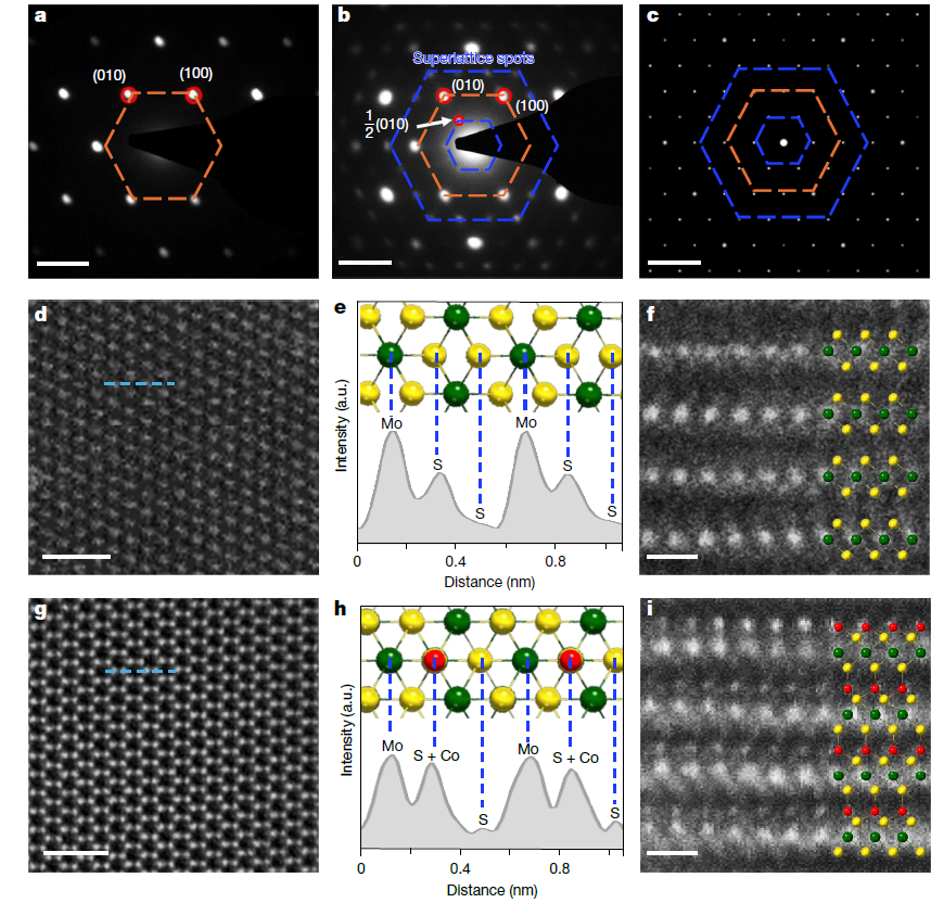 图3:Co1/2MoS2超晶格的原子结构分析。