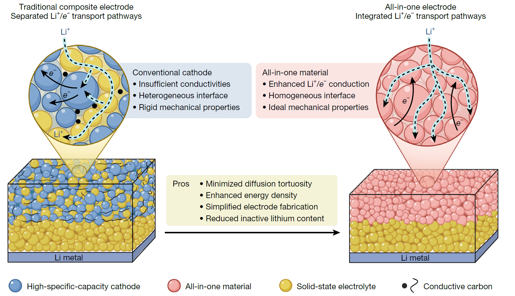 为了从根本上解决这些问题,科学家们提出了一体化(all-in-one)正极的概念——即用一种材料同时扮演活性材料、电解质和导电剂三种角色。尽管这是一个极具吸引力的设想,但此前发现的候选材料或因成本过高,或因性能不佳,始终未能满足实际应用的需求。