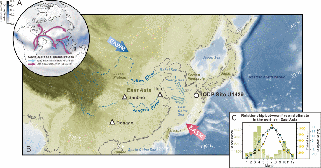 研究站位IODP U1429、火与东亚季风气候的关系及晚更新世人类走出非洲的路线