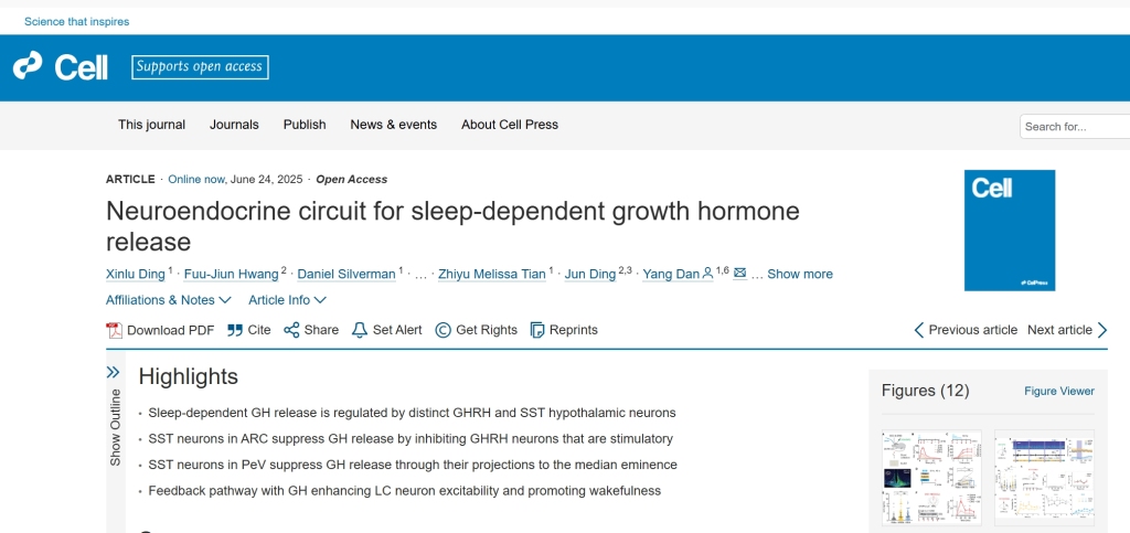 刚刚加盟深圳医科院的丹扬团队,在Cell发文。6月24日,美国国家科学院院士、美国艺术与科学院院士丹扬团队(丁歆璐博士为第一作者)在国际顶尖学术期刊Cell上发表了题为:Neuroendocrine circuit for sleep-dependent growth hormone release 的研究论文。