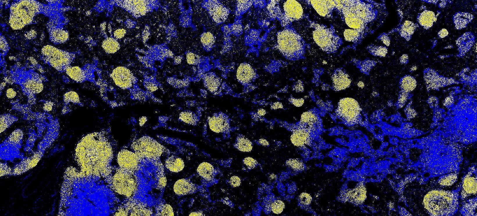 肿瘤前哨淋巴结的荧光成像,树突细胞和T/B细胞星罗交织,宛若梵高画笔下的星空