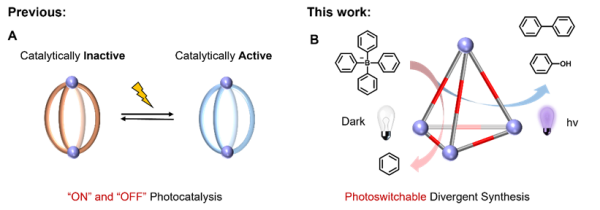 研究通过单一自组装配位笼实现了光控发散合成的创新范式,为设计具有可编程与可切换活性的智能光催化体系提供了新思路。
